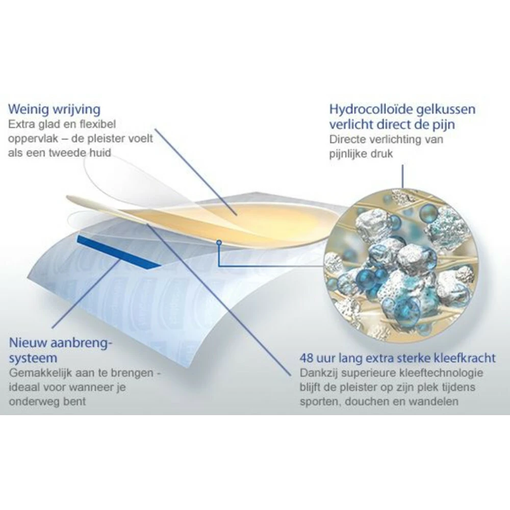 Hansaplast XL Blister PlasterZeer effectieve blaarbehandeling voor hielen, voetzolen of de bal van de voet Extra groot formaat voor grote blaren op de voetVerlicht onmiddellijk pijn van grote blarenBiedt een veilige bescherming tegen vuil en bacteriën Extra sterke kleefkracht: tot wel 48 uurZorgt voor snellere genezing dankzij de hydrocolloïde technologieÂ