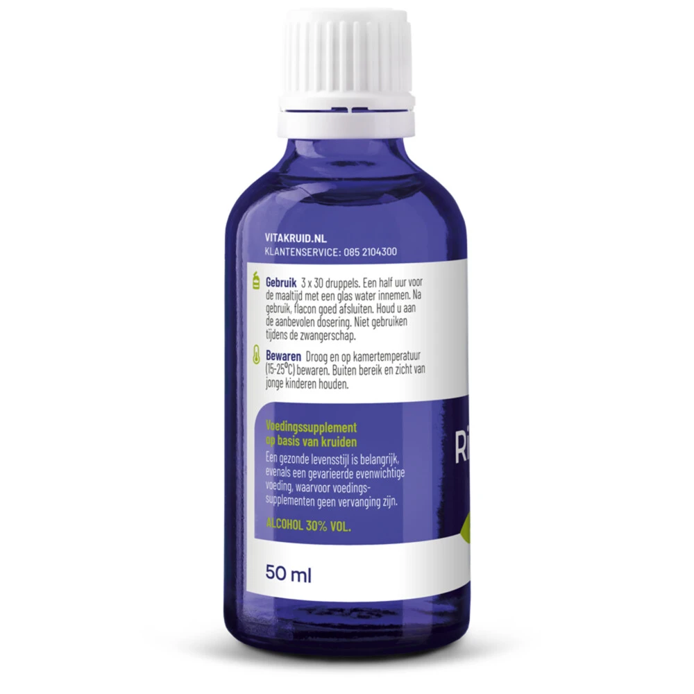 Vitakruid Ribes Nigrum TinctuurVitakruid Ribes Nigrum Tinctuur is een tinctuur op basis van natuurzuiver extract uit de vrucht van de zwarte bessenstruik. Deze bes is rijk aan aan vitaminen, mineralen, sporenelementen en de meervoudig onverzadigde vetzuren gamma-linoleenzuur en alfalinoleenzuur.Ribes Nigrum draagt bij tot de normale werking van spieren en helpt gewrichten soepel te houden*Ribes Nigrum helpt bij een goede vochthuishouding en is goed voor de functie van nieren en urinewegen*Ribes