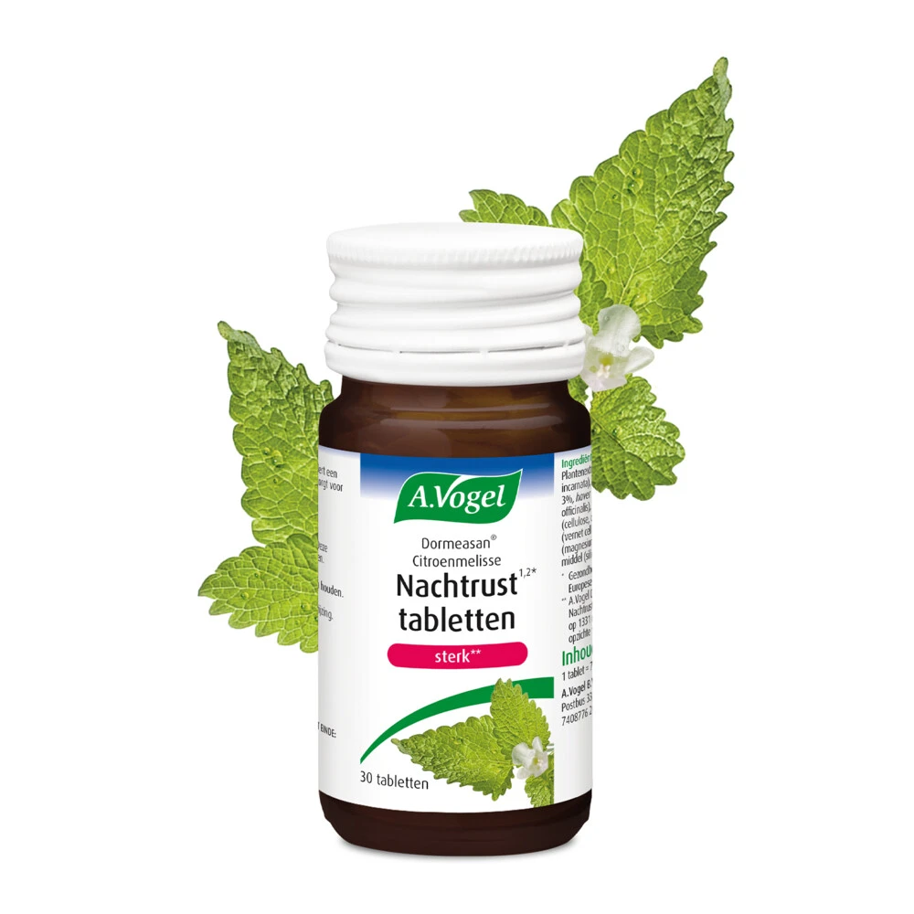 Dormeasan Nachtrust Citroenmelisse Sterk helpt om lekker te slapen1,2*Dormeasan Citroenmelisse sterk** bevat een combinatie van vijf verschillende planten (passiebloem, citroenmelisse, haver, valeriaan en hop) die allen op hun eigen manier bijdragen om lekker te slapen1,2* en om fris en uitgerust wakker worden 1,2 *. Deze combinatie van planten helpt A.Vogel Dormeasan Citroenmelisse sterk** lichaam en geest te ontspannen, lekker te slapen en uitgerust wakker te worden1,2*. De natuurlijke slaap b