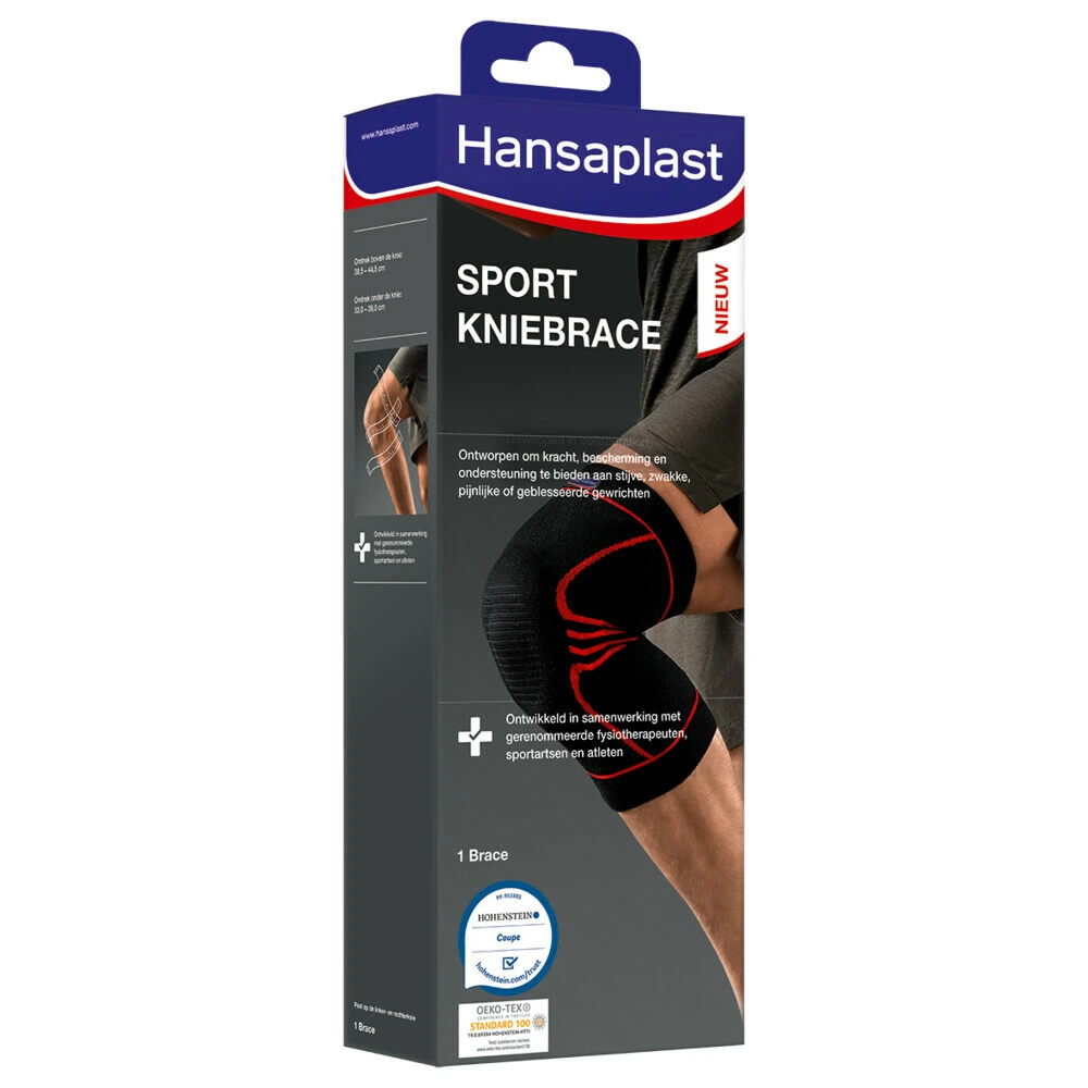 Hansaplast KniebraceDe sport kniebrace is ontworpen om compressie en ondersteuning te geven en zo pijn te verlichten bij een verstuikte knie, chronische knie-instabiliteit, symptomen van overbelasting, gewrichtspijn en artrose. De brace helpt ook om een nieuwe blessure te voorkomen. De extra versteviging rond de knieschijf helpt om druk te verminderen en biedt extra comfort.Ontworpen om stevigheid, bescherming en ondersteuning te geven aan stijve, zwakke, pijnlijke of geblesseerde kniegewrichten