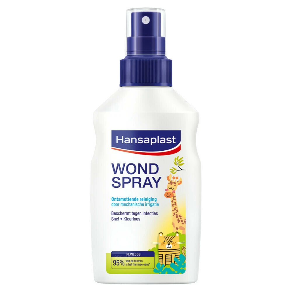 Hansaplast Wondverzorging PakketMet het Hansaplast wondverzorging pakket kun je een wondje of snee bij je kind goed behandelen. Het pakket bestaat uit een wondspray, wondhelende zalf en pleisters met leuke motieven.De Hansaplast Dieren Pleisters hebben verschillende, leuke dierenmotieven en zijn leuk voor kinderen. De pleisters zijn makkelijk te verwijderen en huidvriendelijk. De kleuren zijn veilig voor kinderen.De Hansaplast Wondhelende zalf is een zalf ter ondersteuning en bevordering van het