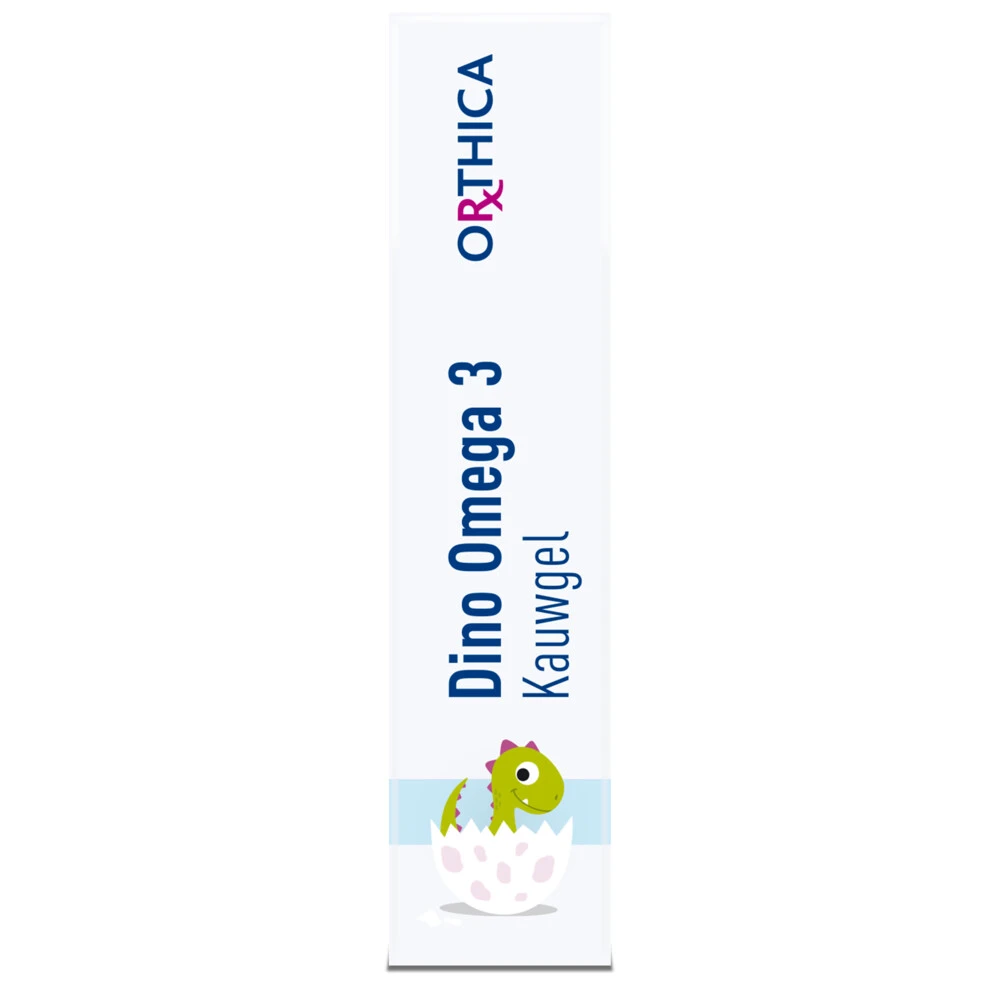 Orthica Dino Omega 3 KauwgelDino Omega 3 van Orthica is speciaal voor kinderen vanaf 3 jaar. Niet alle kinderen eten genoeg vis om voldoende EPA en DHA binnen te krijgen. De Dino Omega 3 is in dat geval een prima aanvulling want het bevat een hoge dosering EPA en DHA namelijk 335 mg omega 3-vetzuren (EPA en DHA) per kauwgel. DHA is een belangrijke bouwsteen voor de hersenen² en DHA is goed voor het gezichtsvermogen².Dino Omega 3 heeft een frisse citroen-limoensmaak. Dino Omega 3 r