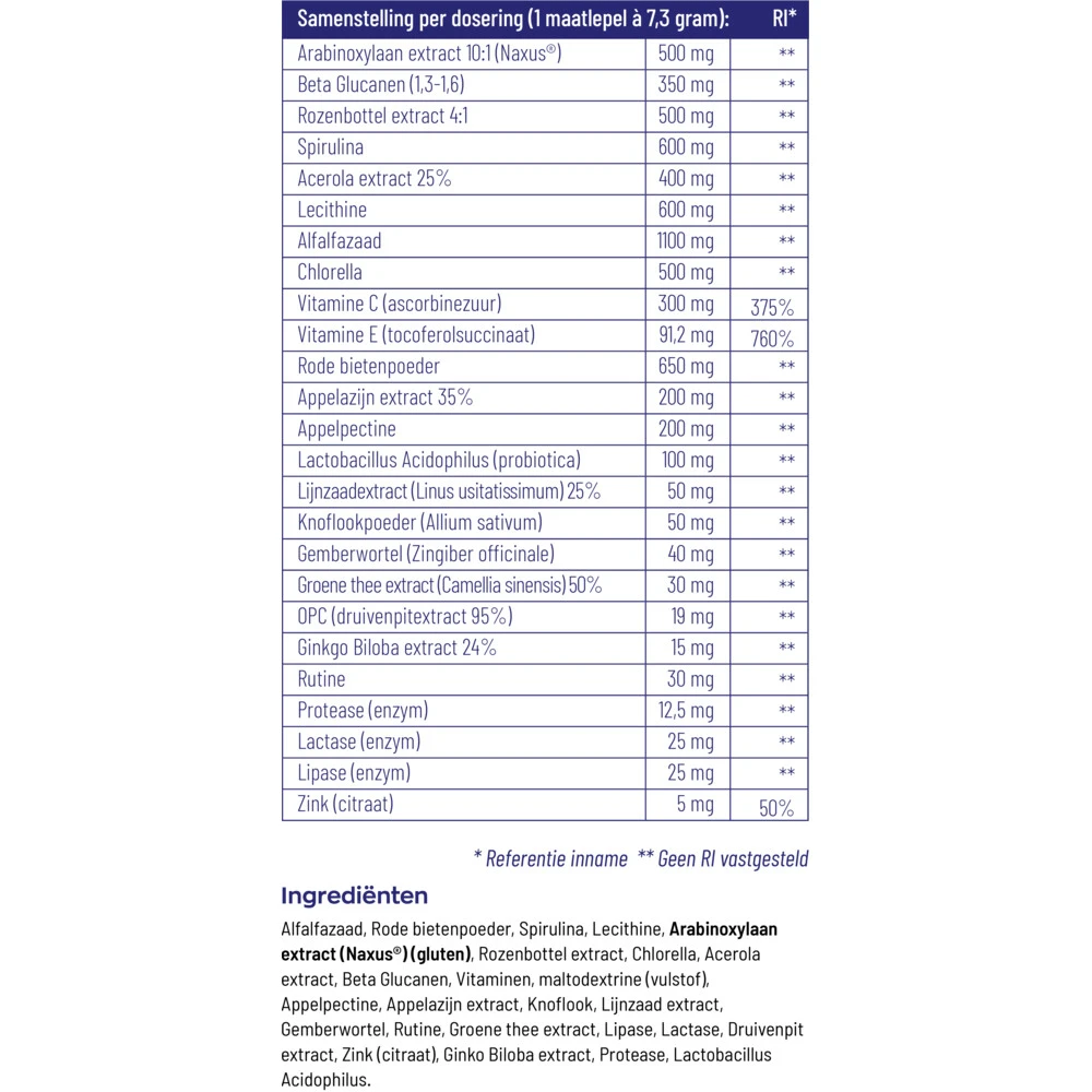 Vitakruid Super GreensVitakruid Super Greens is een voedingssupplement met een veelzijdige, organische formule van hoogwaardige, pure extracten. Super Greens bevat vitaminen, mineralen, sporenelementen, antioxidanten, aminozuren, enzymen en OPC, ook bekend als druivenpitextract. OPC heeft de eigenschap om de opname van andere werkzame bestanddelen te versterken. Daarnaast is de probiotica een waardevol nutriënt binnen de Super Greens formule.Weloverwogen mix van gezondheid bevorderende nutr